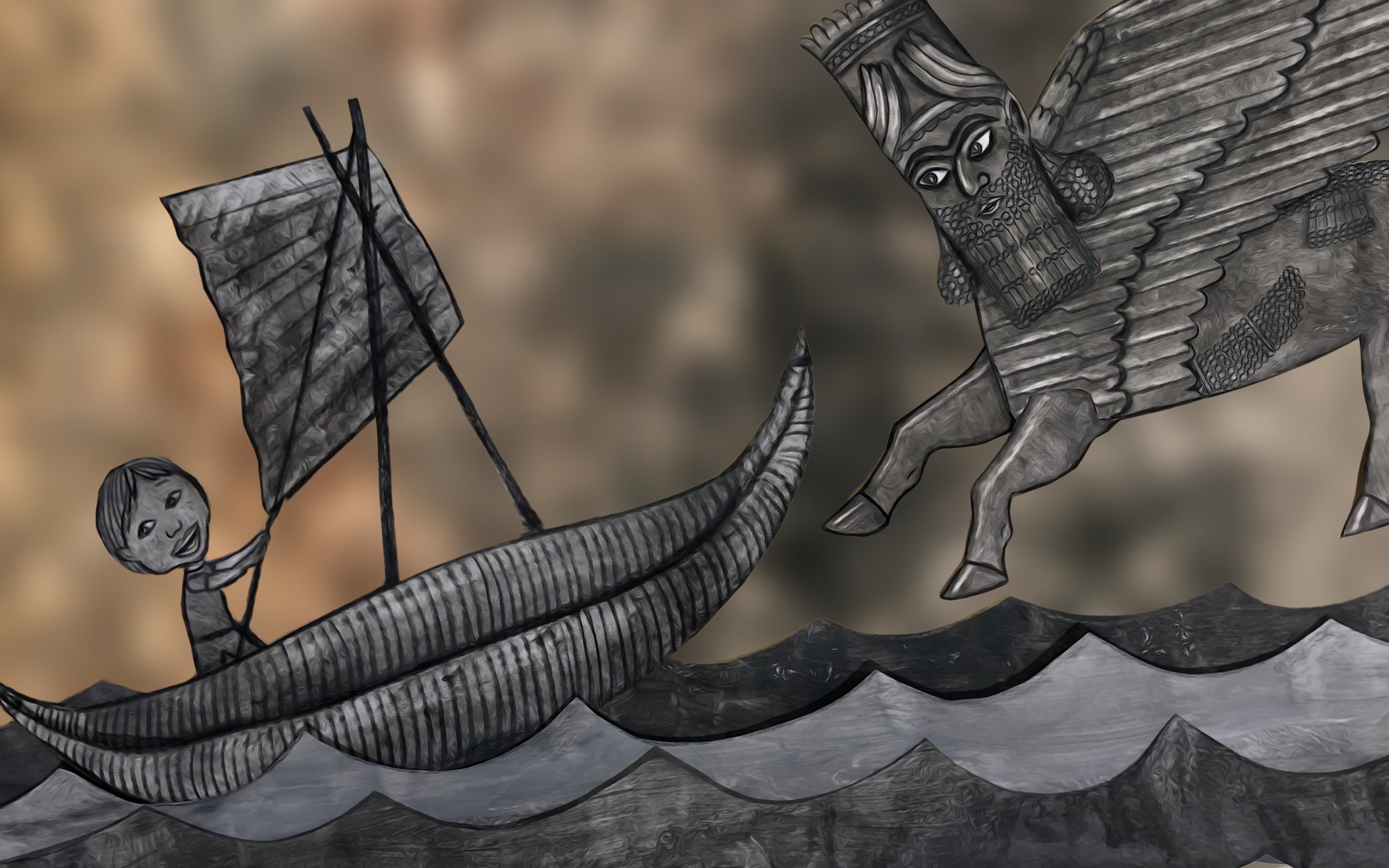 When his dad shows him a different exhibit, Ryan grumbles and groans. This new gallery seems boring… until Ryan sees a stone carving start to move! Suddenly, he is face to face with a powerful guardian from the past- half human, half beast – and enormous!