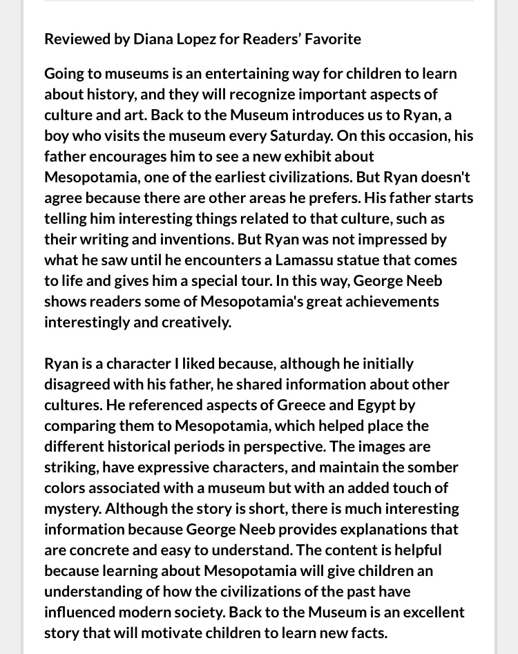 This book has a ⭐️⭐️⭐️⭐️⭐️ star review from Readers’ Favorite. Read the review here: https://readersfavorite.com/book-review/back-to-the-museum