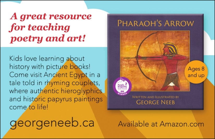 As an elementary teacher, I could see the need for more historical fiction picture books, so I wrote and illustrated Pharaoh’s Arrow. I did months of research so that my book would include accurate information and could hopefully be used by teachers. The story also teaches about compassion, understanding, forgiveness and responsibility.