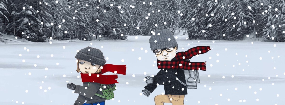 This story is based on my adventures, visiting our cabin in the winter. Thanks to our wood stove, the cabin is comfortable in cold weather. In the fall, we leave the cabin stocked with firewood, dried food and drinking water so we only need to carry in fresh food. If the lake isn’t frozen enough to walk on, we hike in through a forest trail. We love to look for animal tracks and have outdoor fires. My son loves to ice fish and take a cold plunge in the lake!