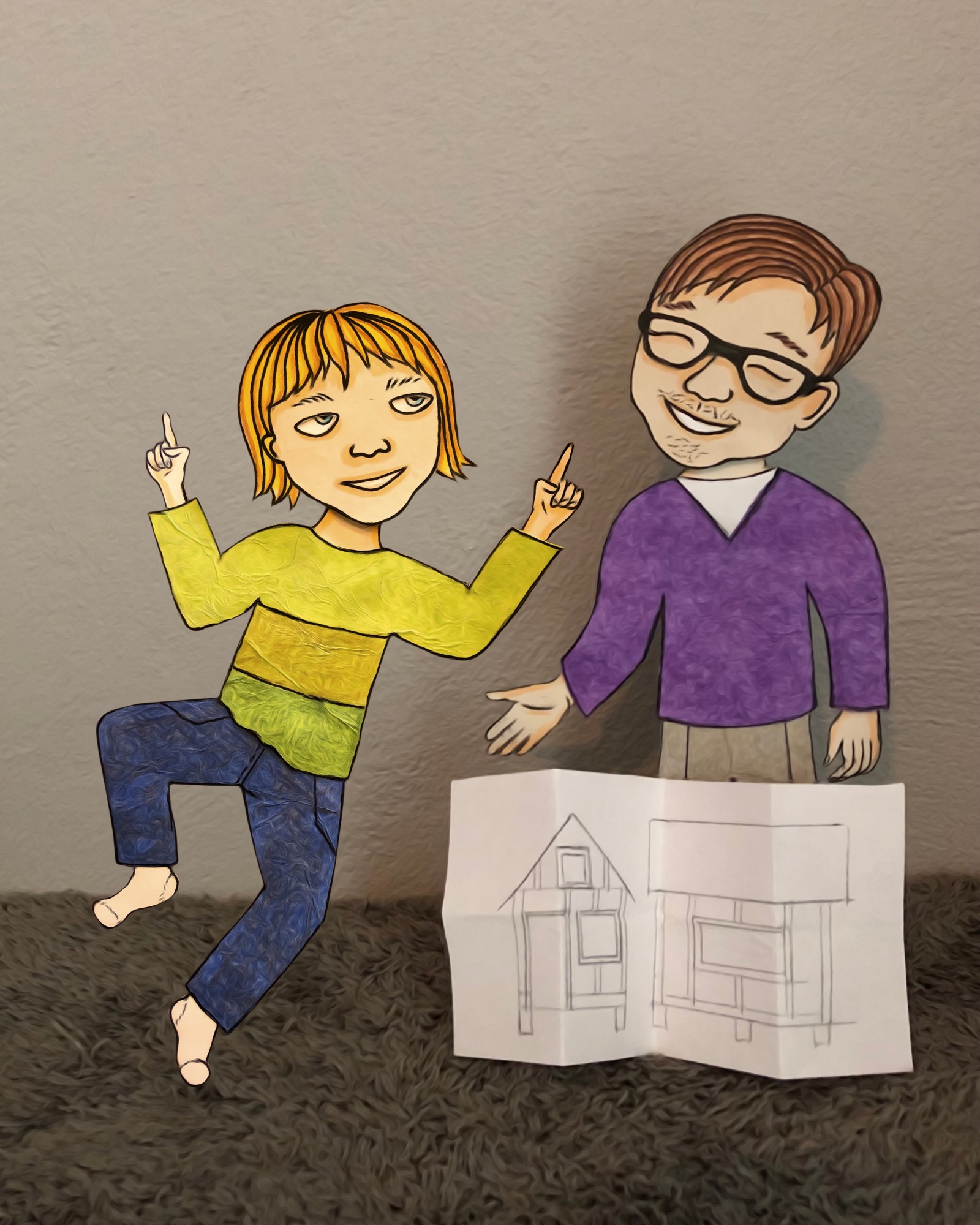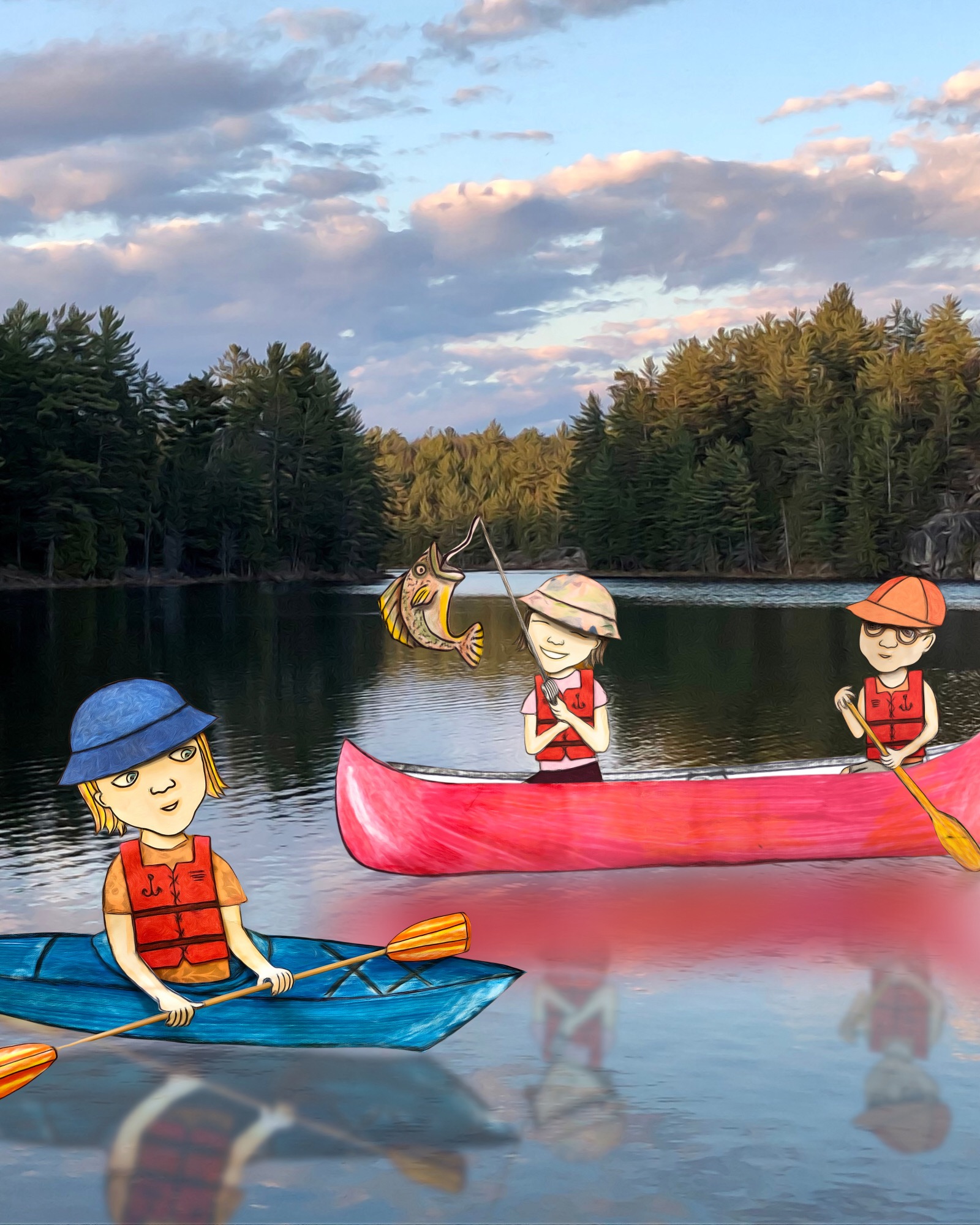 I illustrated this book using cut paper figures and a wooden model. The backgrounds are actual photographs that I took at my cabin in northern Ontario, Canada.