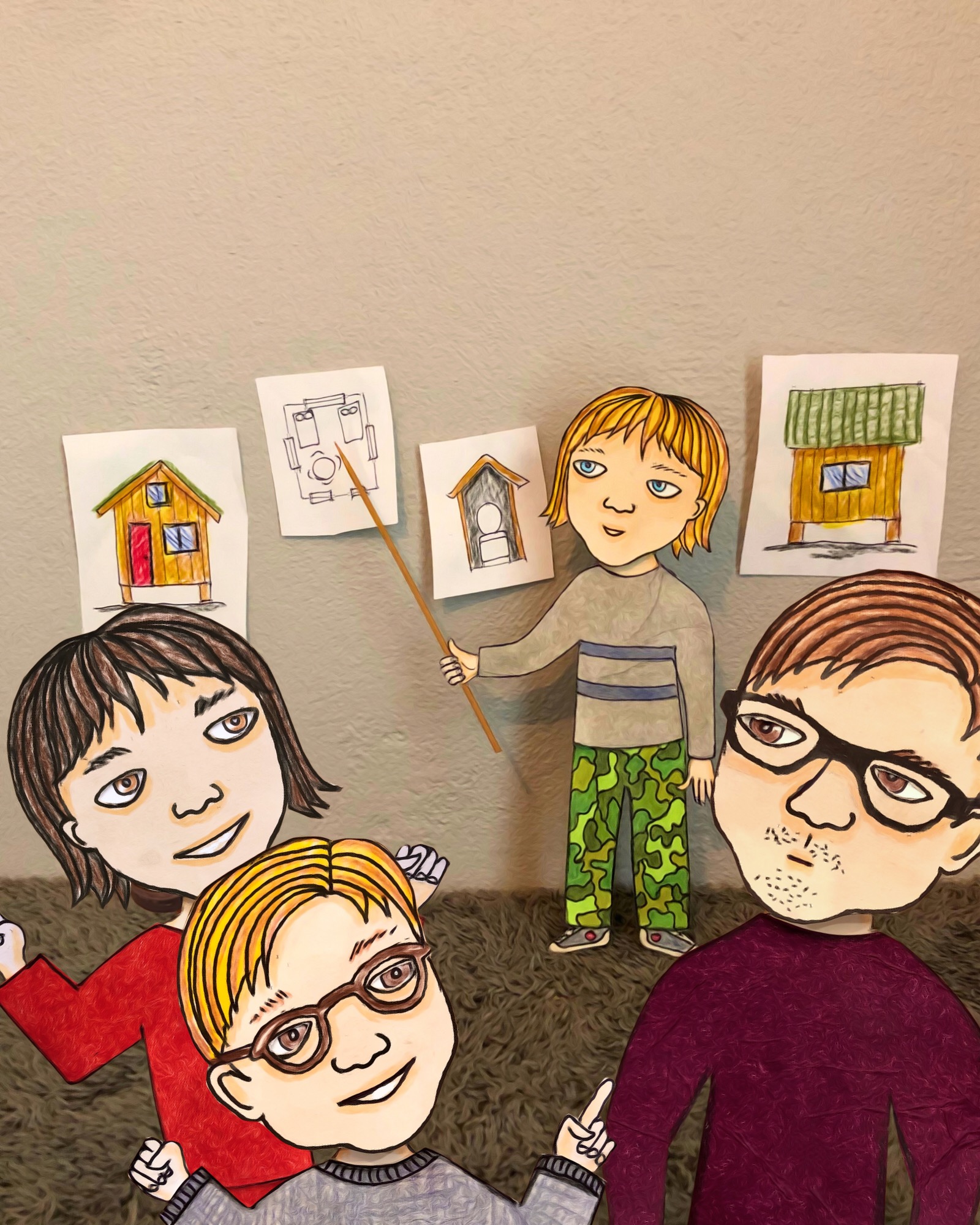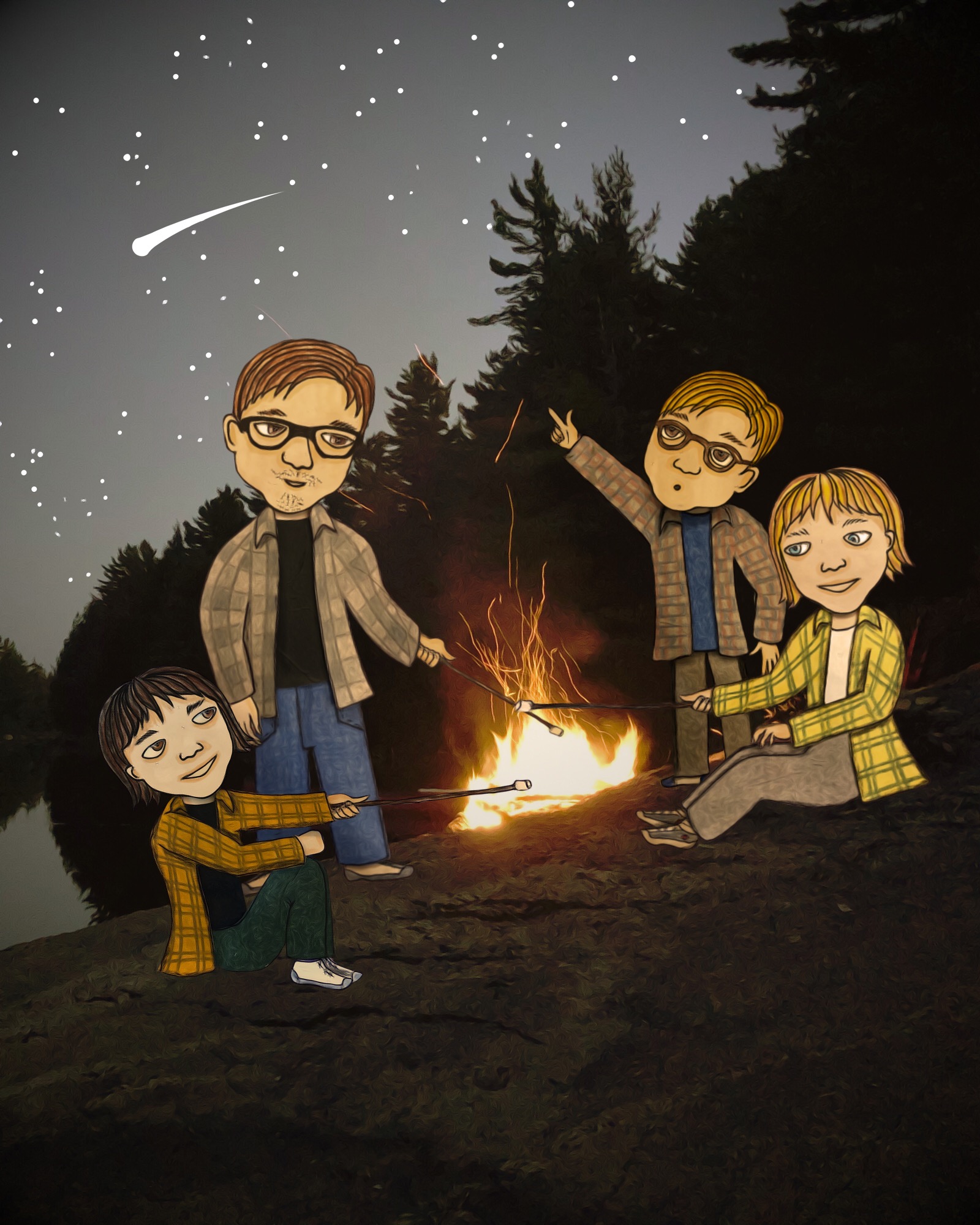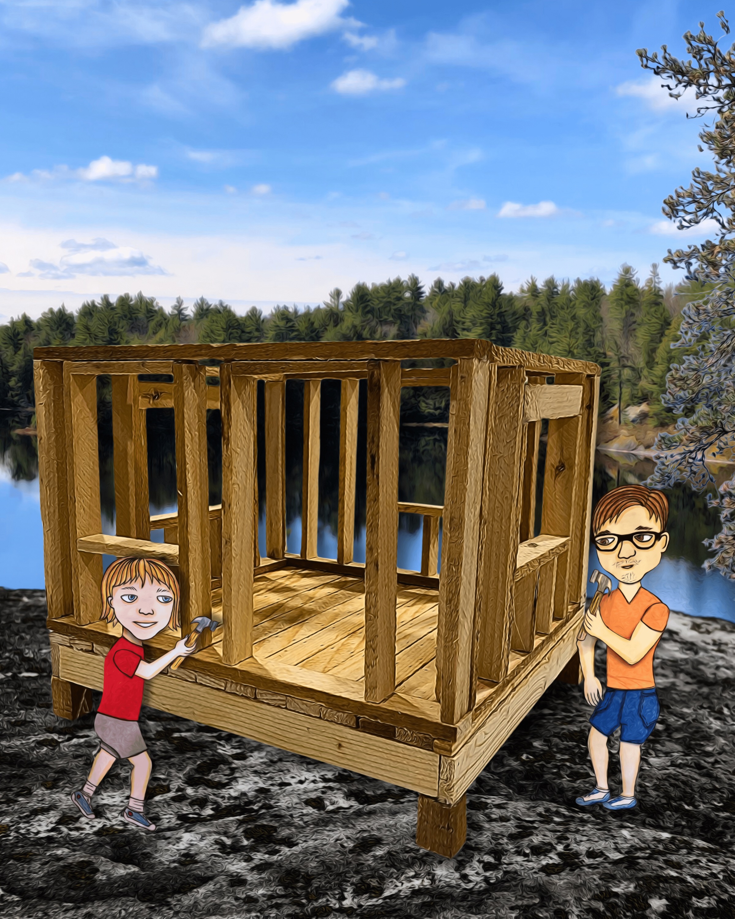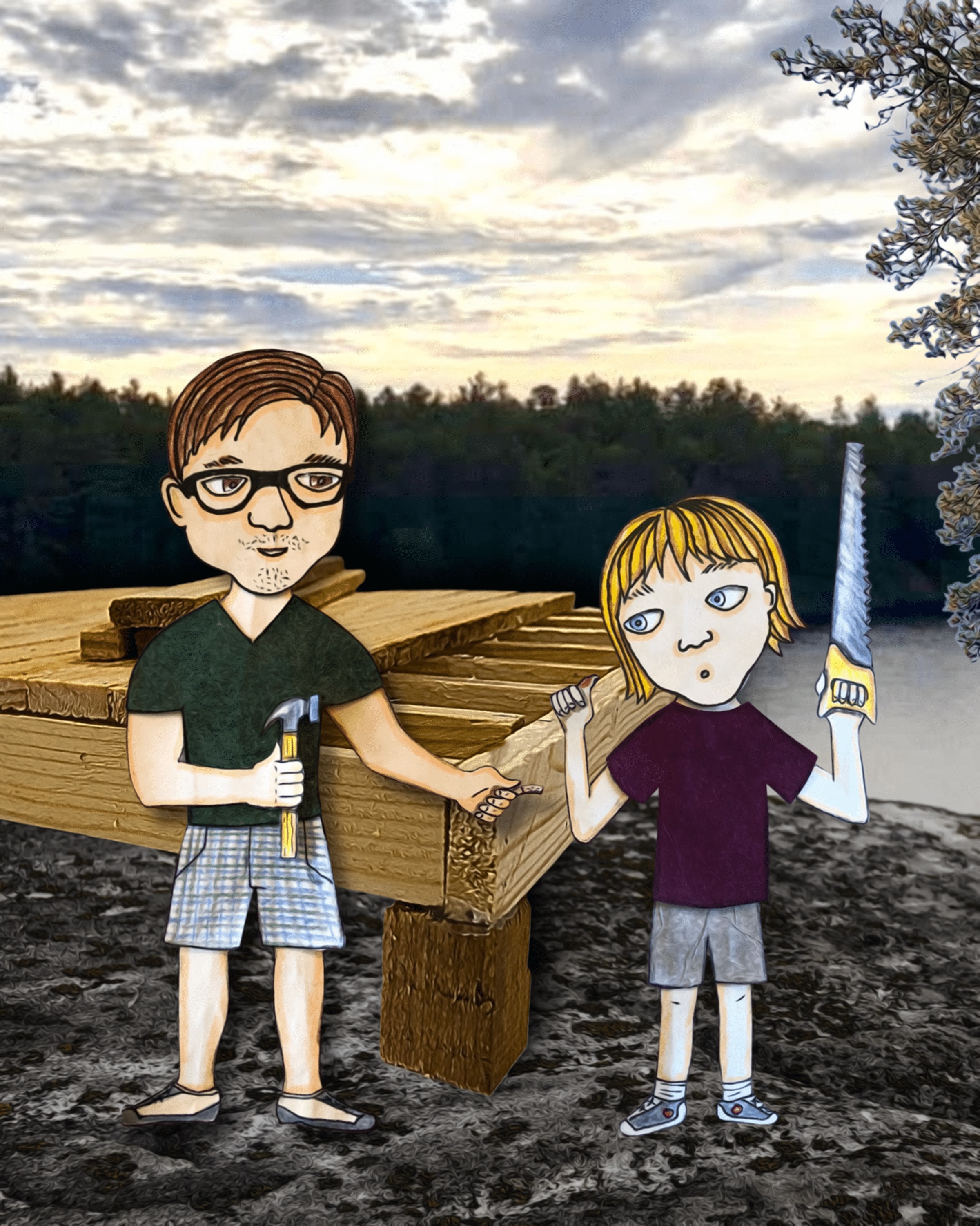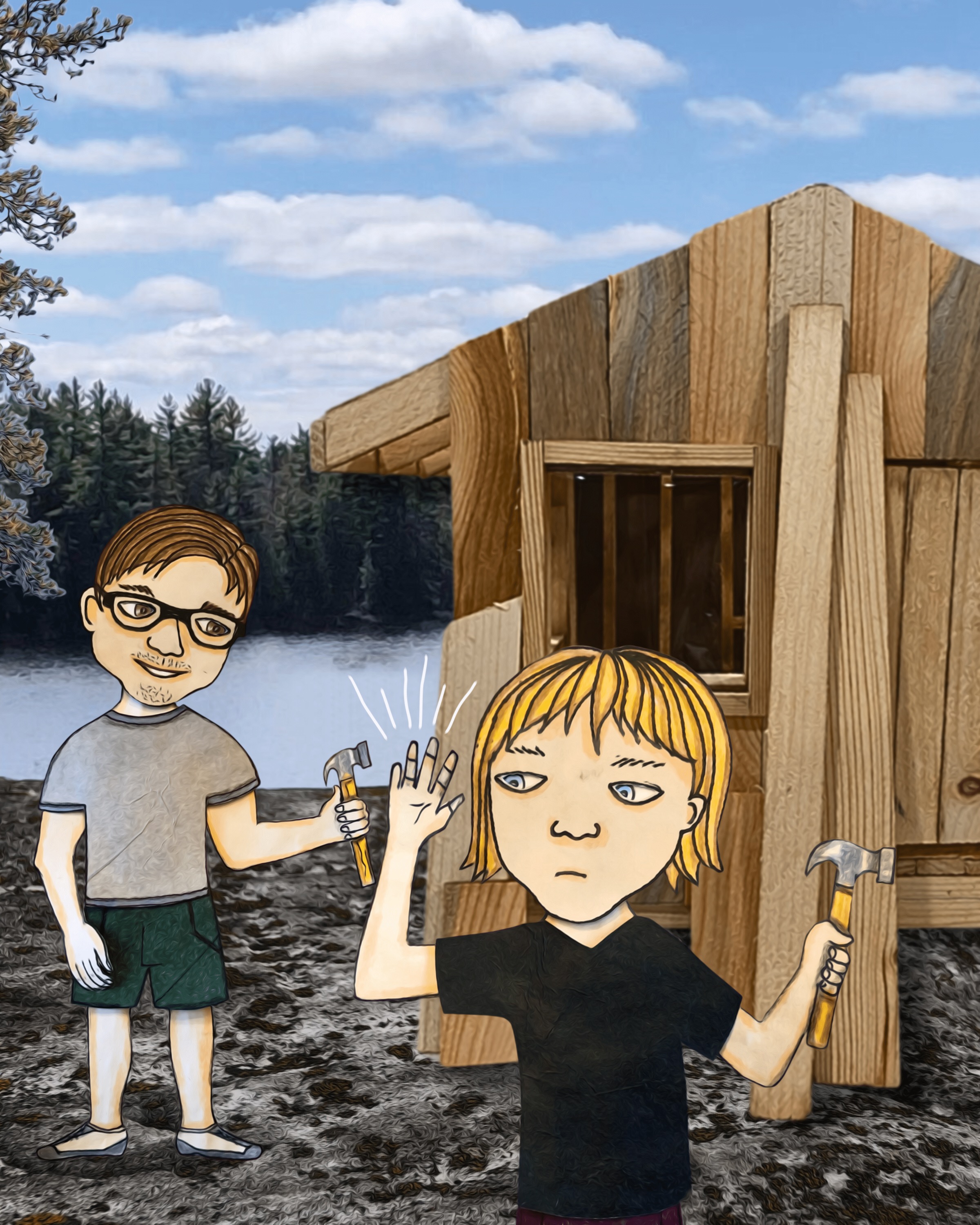 I based this story on my own adventures, building a cabin in the woods with my sons. It was built in the same way as described in the book. The original small cabin has grown over the years but still remains a simple and peaceful family place. We love to swim, hike, canoe, kayak, fish, build fires, play games and enjoy the summer sunshine together.