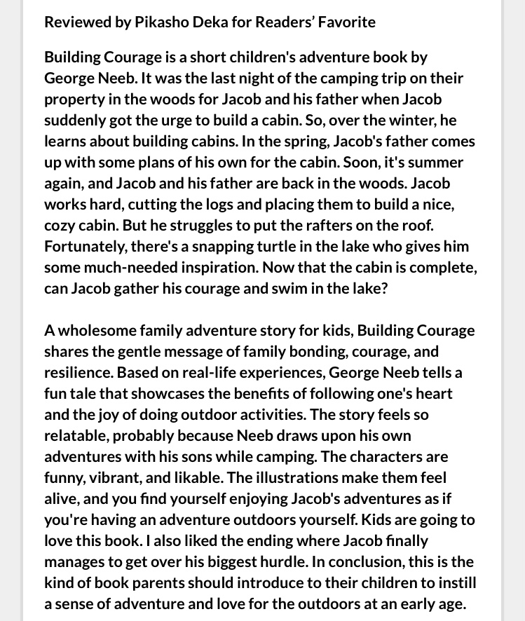 Experience the joys of summer in this picture book adventure that celebrates a love of family, nature, self-reliance and COURAGE!