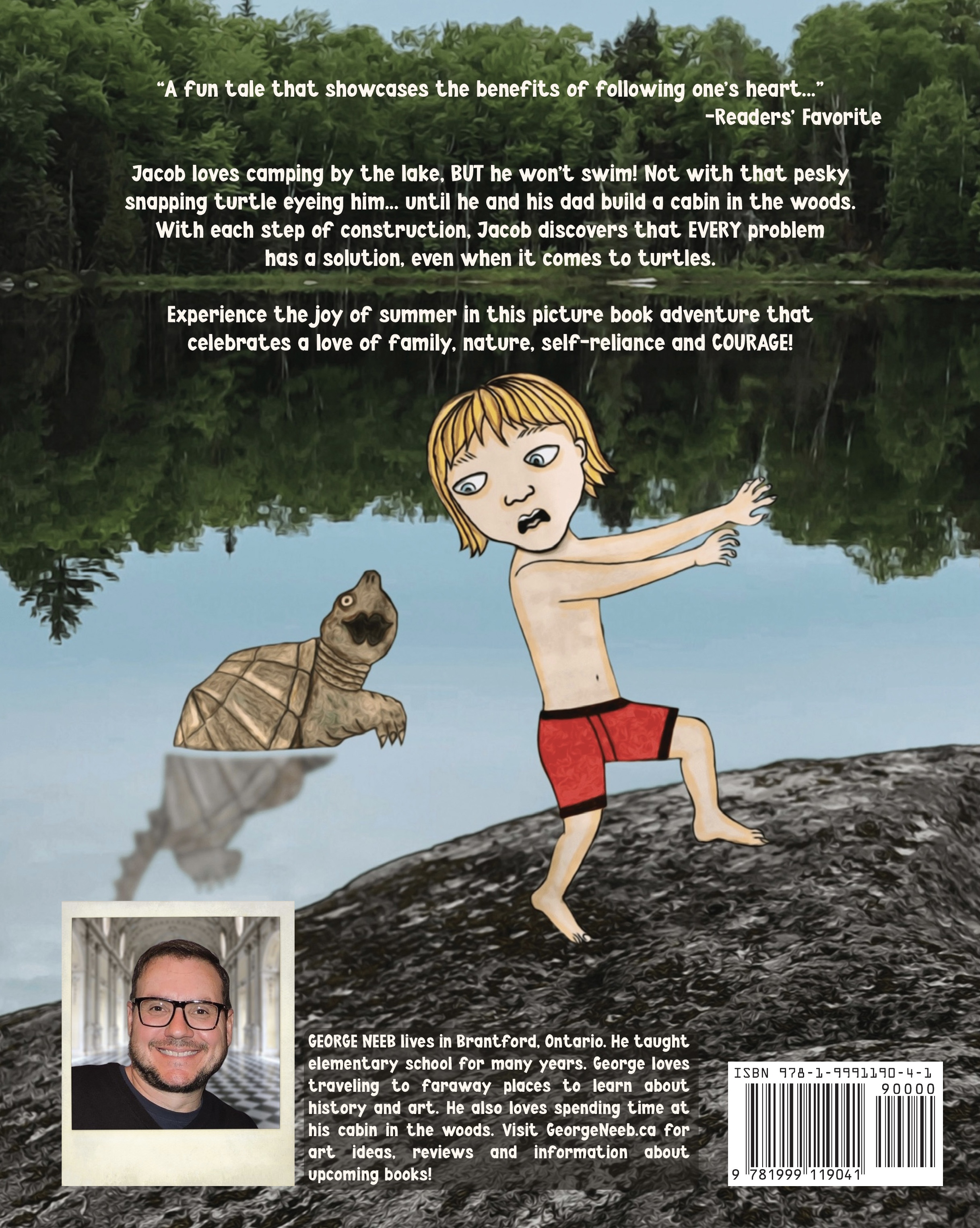 Jacob loves camping by the lake BUT he won’t swim! Not with that pesky snapping turtle eyeing him… until he and his dad build a cabin. With each step of construction, Jacob discovers that EVERY problem has a solution- even when it comes to turtles!